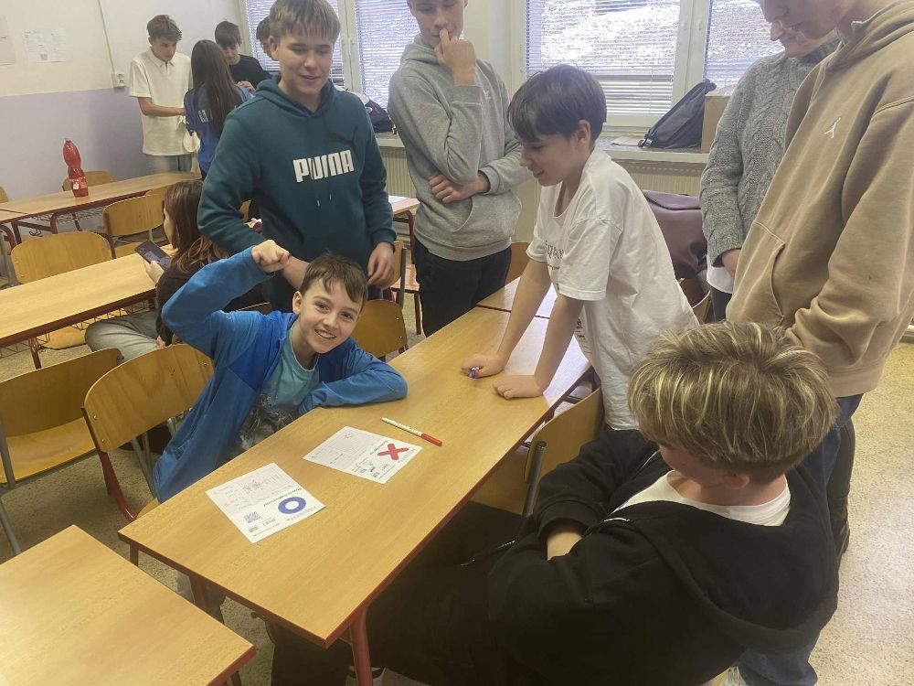 Celý turnaj začalo klasické kolečko v podobě úvodní prezentace – naše soutěžící totiž kromě samotných soupeřů čekala překážka coby nový způsob zahájení duelu. Vše se však zvládlo na výbornou a mohli jsme tak brzy vyhlásit začátek základní skupiny. Byť je každý z našich soutěžících jiný, při zápasech vypadali prakticky jeden jako druhý – oči upřené na hrací pole, liner kdykoli připravený k dalšímu tahu a bystrá mysl pracující na plné obrátky. O to častěji jsme pak byli svědky bezprostředního nadšení čerstvých výherců partií. Remízy jako vždy nebyly ničím neobvyklým, a jedna z nich dokonce vyústila v rozstřel o postup do play-off. V týmu MGVA z Masarykova gymnázia ve Vsetíně a týmu Máneska 1 ze Základní školy Mánesova v Otrokovicích tak došlo na výběr zástupců do onoho obávaného rozstřelu. Jednoho čekalo finále, druhého cesta domů – rozstřel však rozhodl ve prospěch týmu MGVA a se členy týmu Máneska 1 jsme tak byli nuceni se rozloučit. Podobný osud bohužel postihl i jejich kolegy z týmu Máneska 2, stejně jako týmy Blbý, blbější a Kuba ze Vsetína, Ořechovské pišqwory, FC Kouty a smečku Hyen ze Základní školy Videčská v Rožnově pod Radhoštěm, dále tým Hrozinky a tým Děsivé květinky z Valašské Polanky. Přesto ale všem za jejich obdivuhodné výkony mockrát děkujeme!